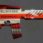 Guns are made of 10- gauge mild steel. Plasma-cut design, painted with PPG Auto paints in Candy Blue and Red with lots of clear for a long-lasting finish.
